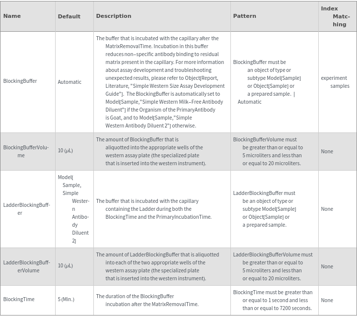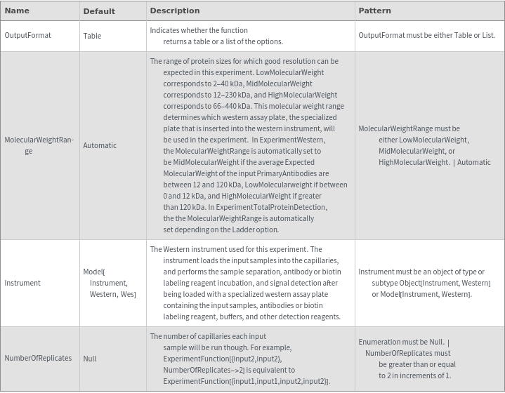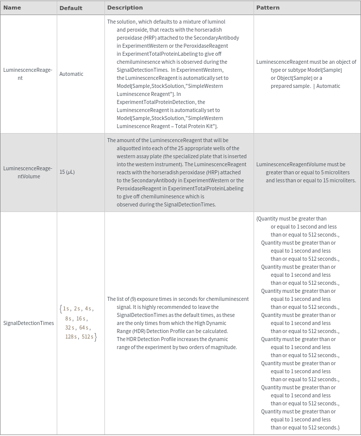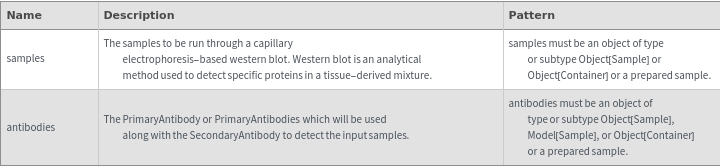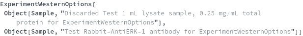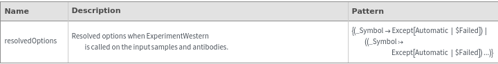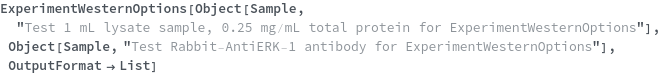 ExperimentWesternOptions[samples,antibodies]resolvedOptions