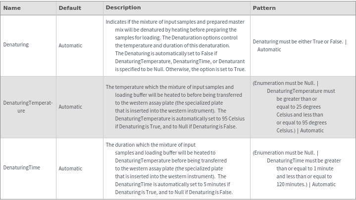 Denaturation Options