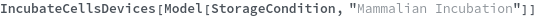 returns a list of cell incubator model(s) can be used to incubate with the specified option settings.