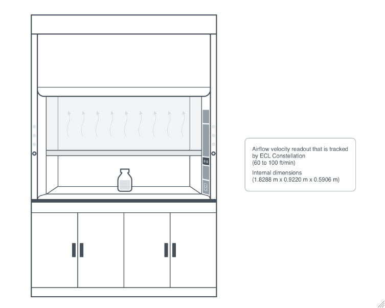 Figure 2.9.1: Fuming samples are automatically routed to use a fume hood as the TransferEnvironment in ExperimentTransfer. Airflow velocity in the fume hood is tracked by ECL Constellation and can be viewed by inspecting the instrument object.