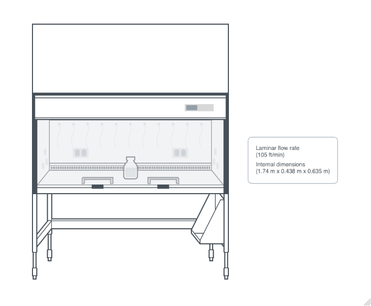Figure 2.10.1: A biosafety cabinet will be used when transfering into/out of cell samples. Microbial samples must be handeled in the Microbial BSC and Tissue Culture samples must be handeled in the Tissue Culture BSC (specified by the CultureHandling field in the Model[Instrument, BiosafetyCabinet]). All biosafety cabinets have a full set of micropipettes, serological pipette, sterile cooler, sterile heater, aspirator, and analytical balance.