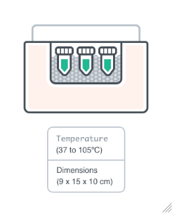 Figure 2.13.1: Containers are placed in the main compartment of the portable heater. The portable heater is filled with lab armor beads to ensure that the entire container is heated to the correct temperature.