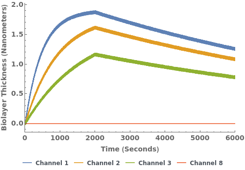 Given a Object[Data,BioLayerInterferometry] with any data, PlotBioLayerInterferometry returns an plot showing the binding for all channels: