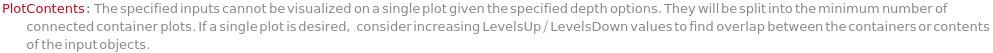 • DisconnectedGraphThe specified inputs cannot be visualized on a single plot given the specified depth options. They will be split into the minimum number of connected container plots. If a single plot is desired, consider increasing LevelsUp/LevelsDown values to find overlap between the containers or contents of the input objects.