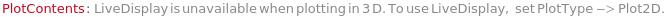 IncompatibleOptionsLiveDisplay is unavailable when plotting in 3D. To use LiveDisplay, set PlotType->Plot2D.