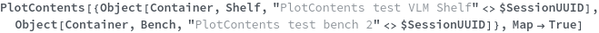 If Map->False and a list of items is supplied, a single plot is returned if the items' containers or contents overlap given the provided 'Levels'/'Nearest' options: