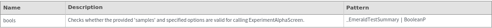 ValidExperimentAlphaScreenQ[samples]⟹bools