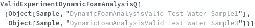 ValidExperimentDynamicFoamAnalysisQ[samples]⟹boolean
