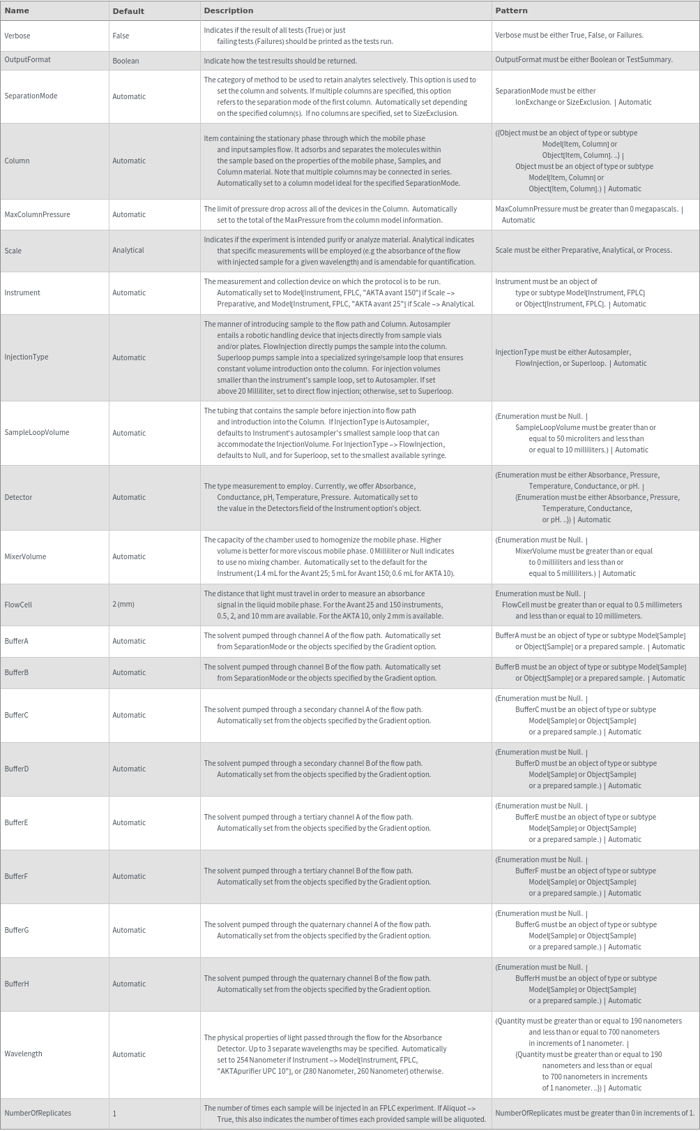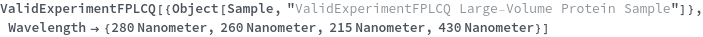 checks whether the provided objects and specified options are valid for calling ExperimentFPLC.