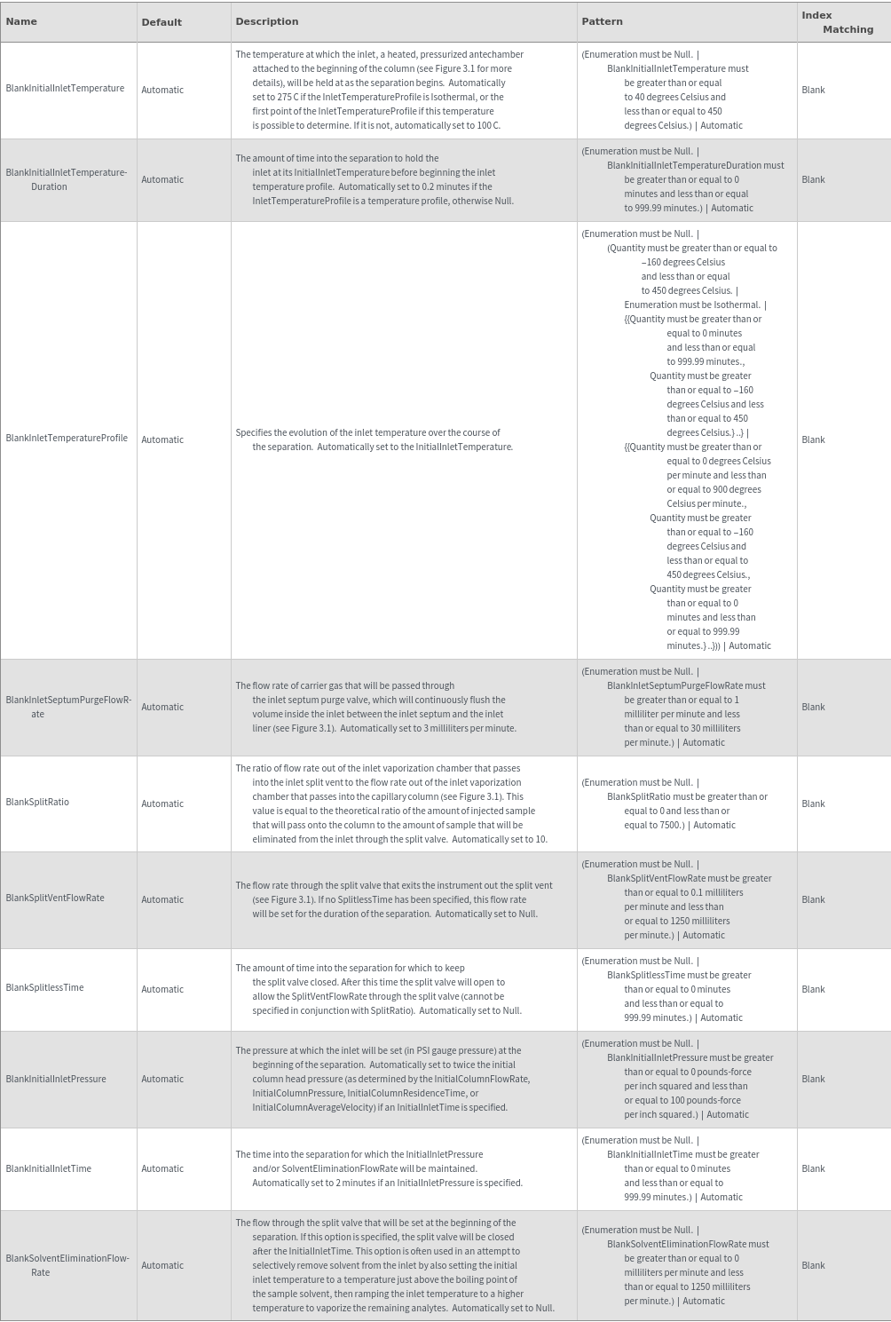 Blank Inlet Temperatures, Pressures, and Flow Rates Options