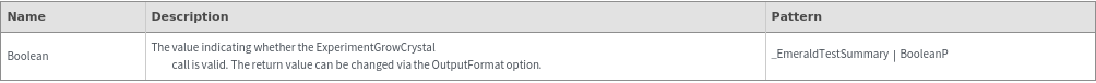 Returns a Boolean indicating the validity of a GrowCrystal experimental setup on a sample: