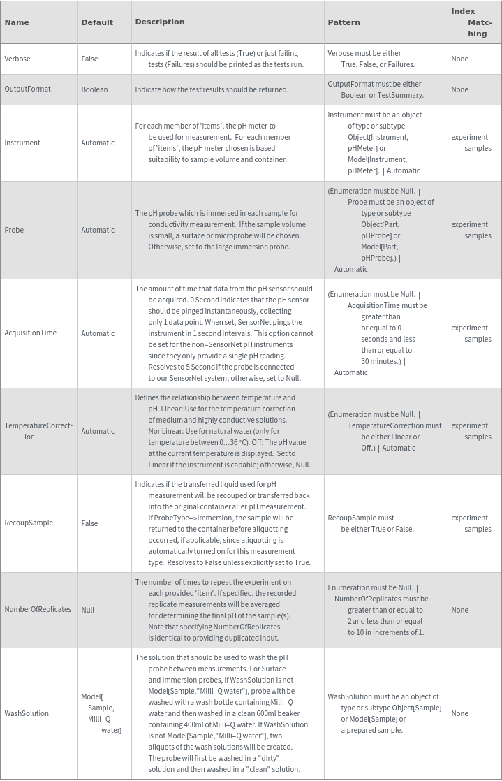 checks whether the requested samples and specified options are valid for calling ExperimentMeasurepH.