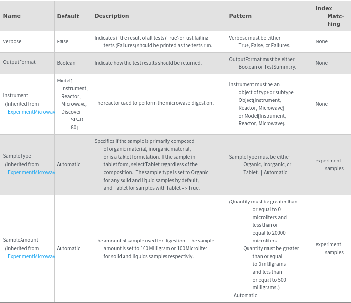 ValidExperimentMicrowaveDigestionQ[samples]bools