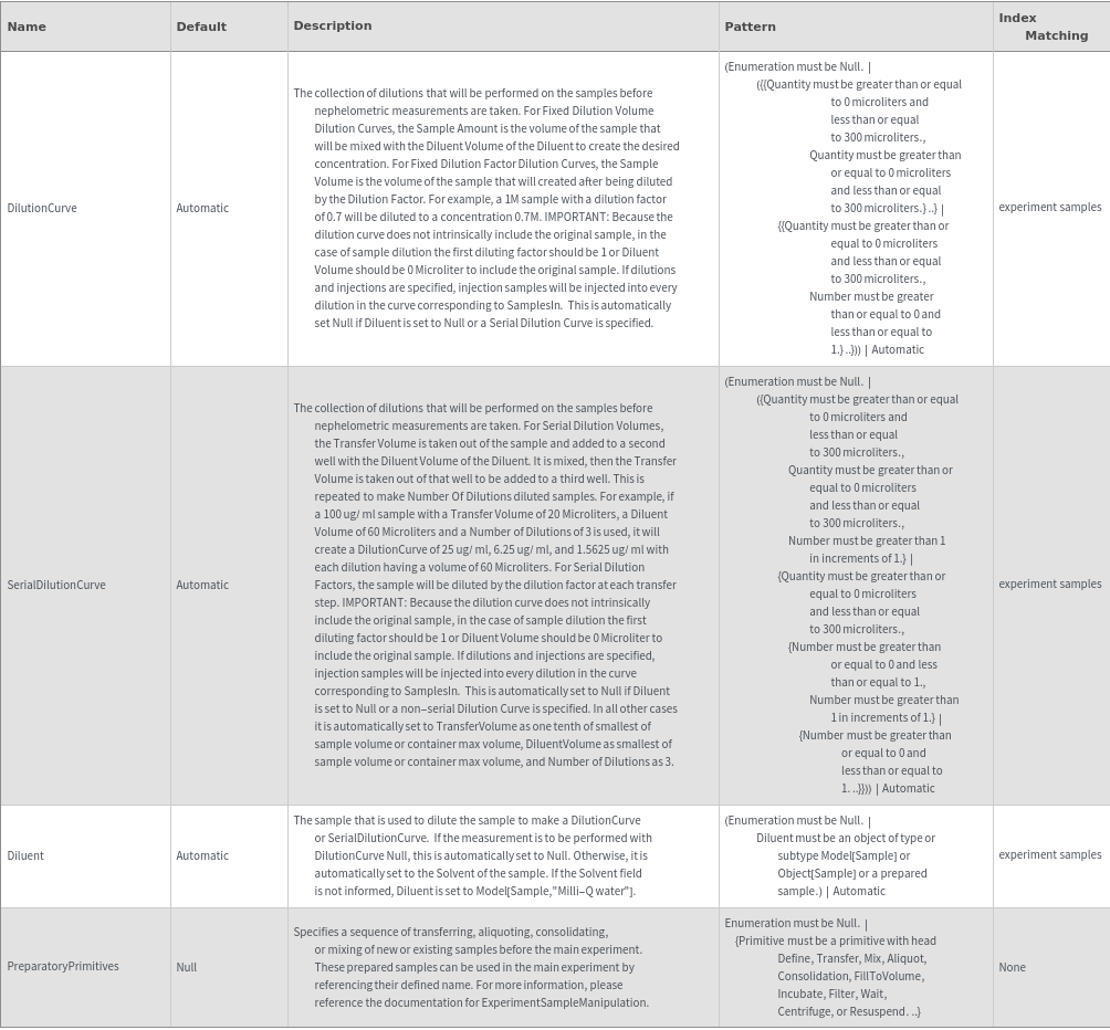 checks whether the provided samples and specified options are valid for calling ExperimentNephelometry.